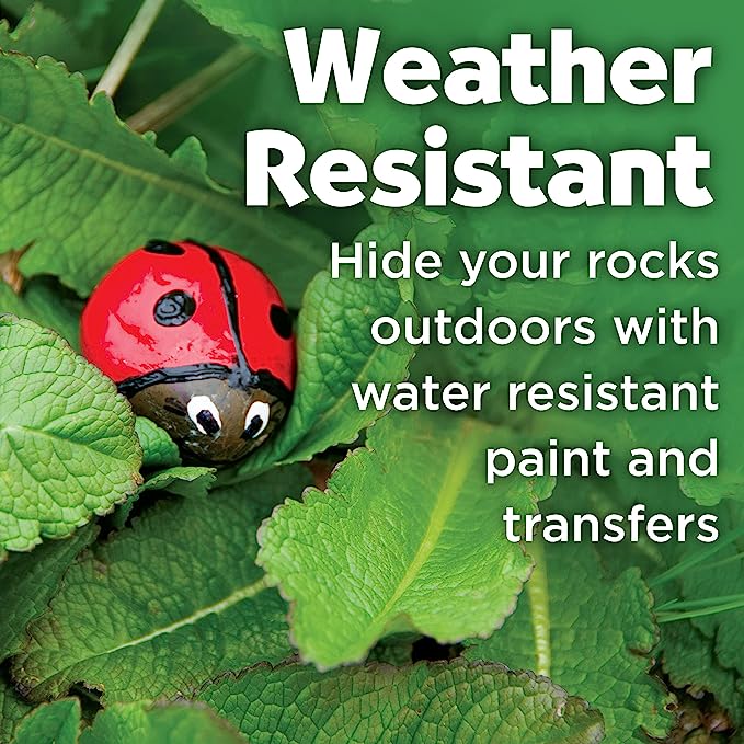 - OUTDOOR KIDS ACTIVITIES: Explore the outdoors and hide your rocks as a fun kids craft activities. The Hide and Seek Rock Painting kit for kids ages 6-12+ includes 8 waterproof paint colors, paintbrush, rock transfer designs (apply like a temporary tattoo for your rock craft), and tracking stickers