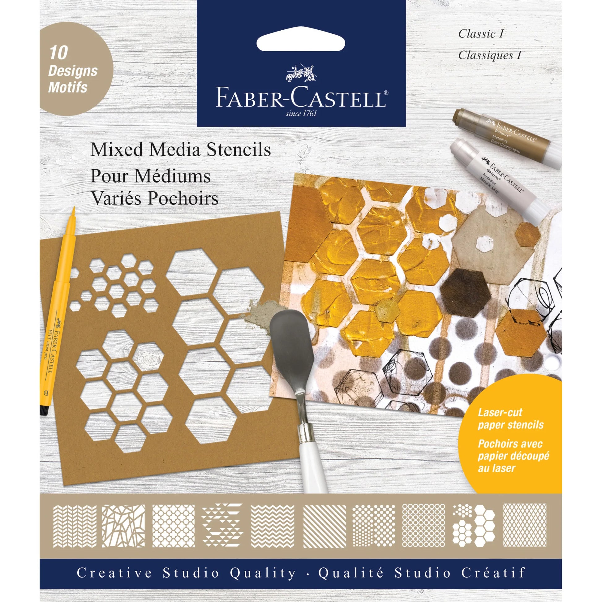 - WORKS WITH A VARIETY OF MEDIUMS - Use mixed media stencils with all of your favorite Faber-Castell art products such as Gelatos Colors, Pitt Artist Pens, Textural Accents and more!