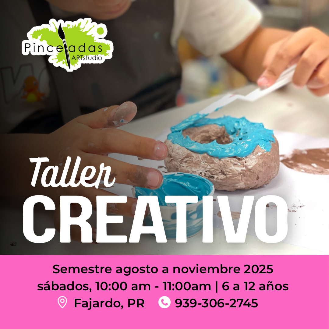 Taller Creativo | Este curso se reúne una vez a la semana por un periodo de una hora. Taller Creativo comprende de 12 clases. Comenzamos el sábado 30 de agosto de 2025 y culminamos el sábado 15 de noviembre de 2025. Para estudiantes de 6 a 12 años. El horario es sábados 10:00 am a 11:00 am