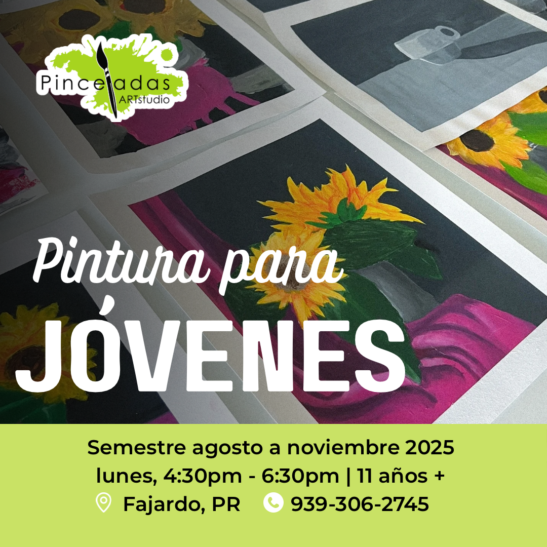Pintura para jóvenes | En el curso de Pintura para jóvenes se trabajará sobre la teoría, psicología del color, técnicas y materiales de la pintura, ejercicios prácticos un proyecto final para exhibición. Se trabaja de maneja general e individualizada según las destrezas que tenga cada estudiante. Para estudiantes de 11 años de edad en adelante.