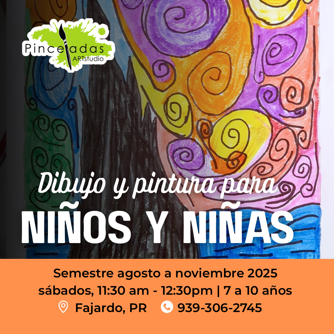 Dibujo y pintura para niños y niñas | Este curso se reúne una vez a la semana por un periodo de una hora. Dibujo y Pintura para niños comprende de 12 clases. Comenzamos el 30 de agosto de 2025 y culminamos el 15 de noviembre de 2025. Para estudiantes de 7 a 10 años. El horario es sábado 11:30am pm a 12:30 pm.