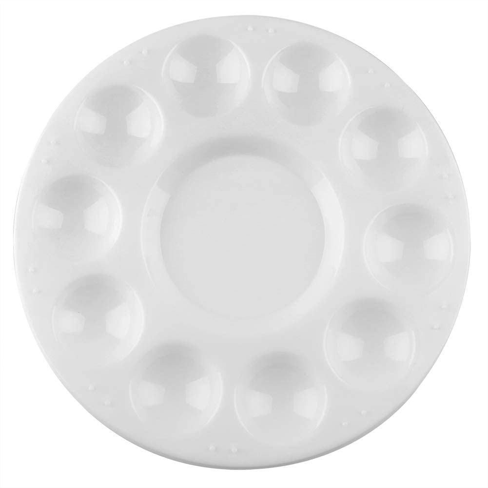 PALETA REDONDA PLASTICA DE 10 HUECOS, IDEAL PARA PINTURA ACUARELA, ACRÍLICA O ACEITE.